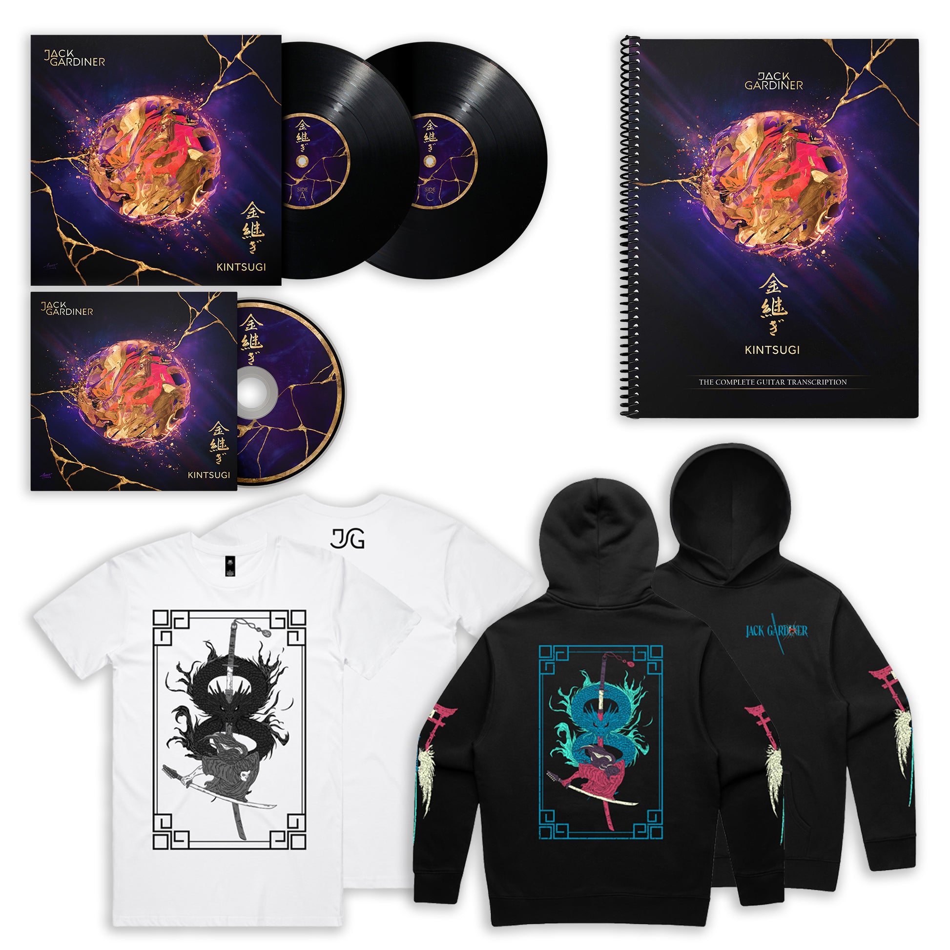Includes the Kintsugi vinyl, CD, Fractured Steel hoodie, Fractured Steel tee, and official tab book transcribed by Levi Clay. Plus, get the Kintsugi Digital Ultimate Package with over 6 hours of video lessons, transcriptions, high-quality backing tracks, video playthroughs, downloadable album, and Neural DSP presets.